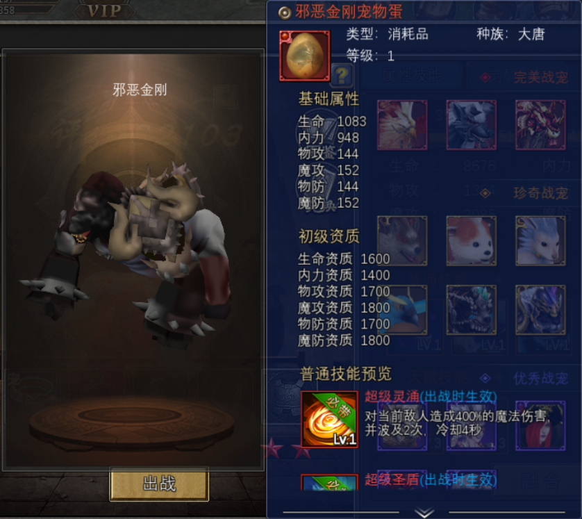 超级痛击(觉醒2星激活):提高战宠致命概率,并使战宠造成的伤害提高